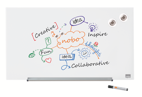 Kuivapyyhittävät valkotaulukynät sopivat täydellisesti lasitaululle.